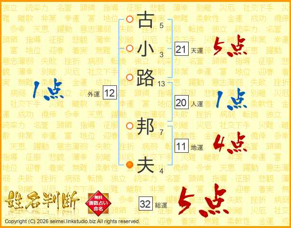 古小路邦夫さんの総運は32画の5点!