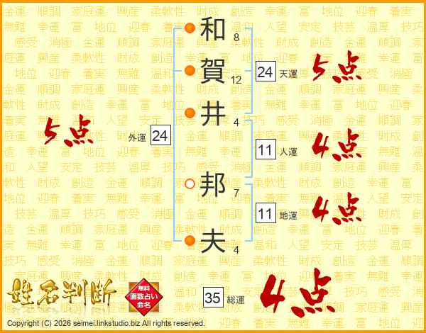 和(8画)賀(12画)井(4画) 邦(7画)夫(4画)