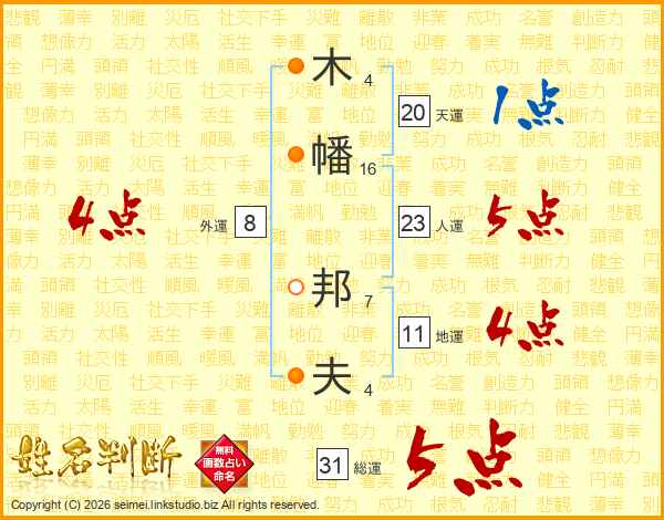 木(4画)幡(16画) 邦(7画)夫(4画)