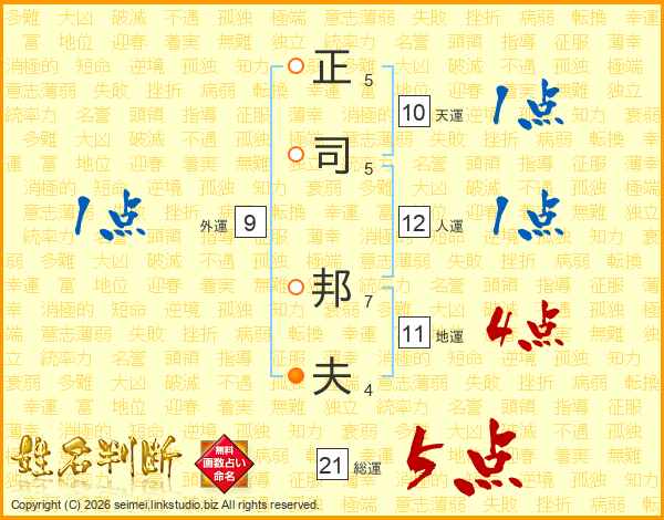 正司邦夫さんの総運は21画の5点!