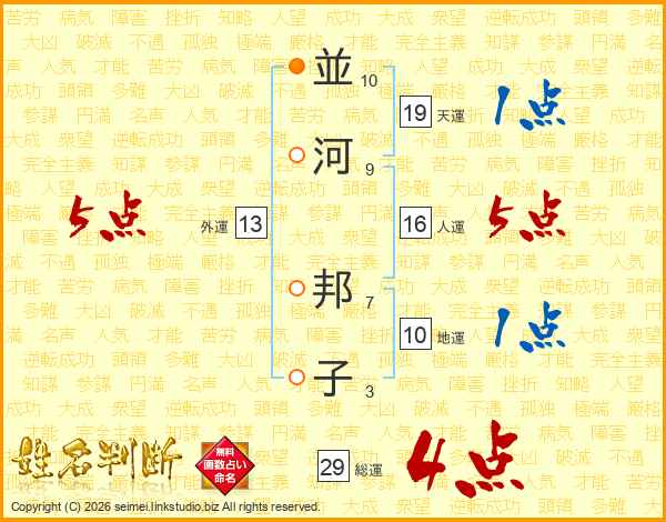 並(10画)河(9画) 邦(7画)子(3画)