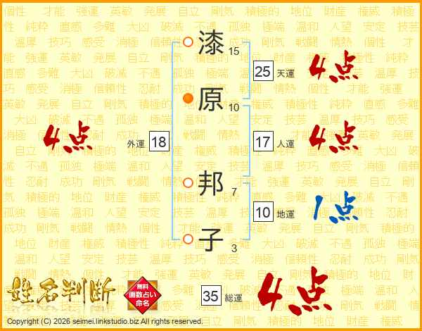 漆原邦子さんの総運は35画の4点!
