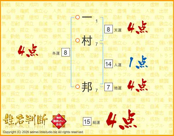 一村邦さんの総運は15画の4点!