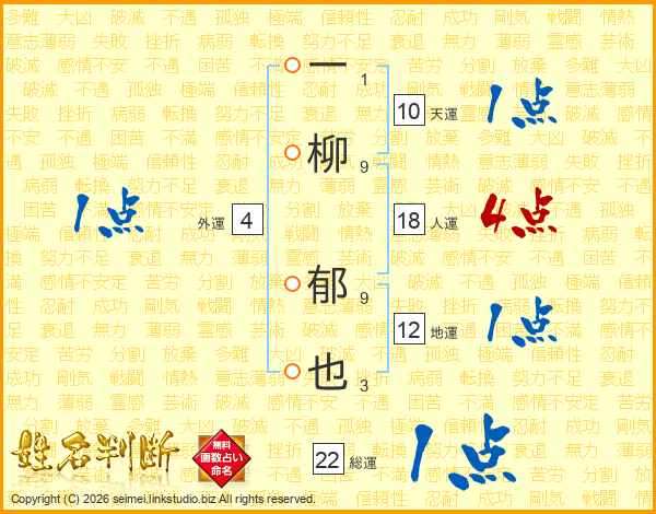 一柳郁也さんの総運は22画の1点!