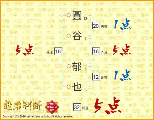 圓谷郁也さんの人運は16画の5点!
