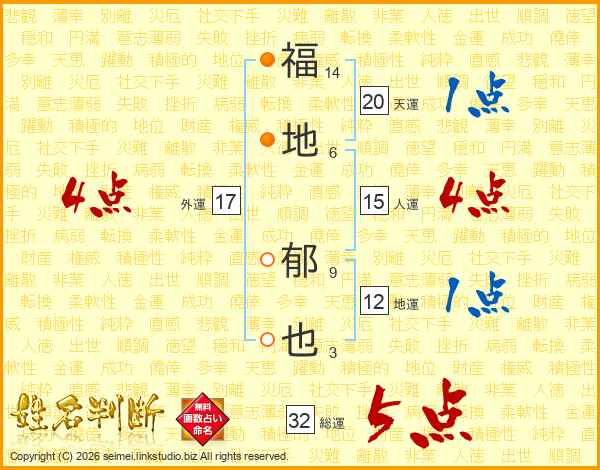 福地郁也さんの総運は32画の5点!