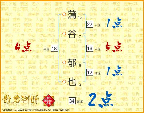 蒲谷郁也さんの総運は34画の2点!
