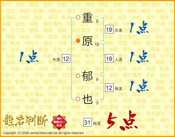 重原郁也さんの総運は31画の5点!