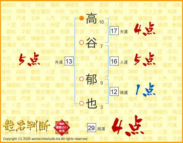 高谷郁也さんの総運は29画の4点!