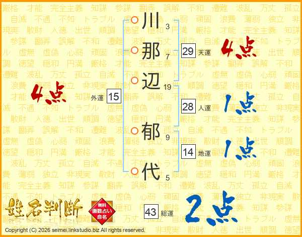 川那辺郁代さんの総運は43画の2点!
