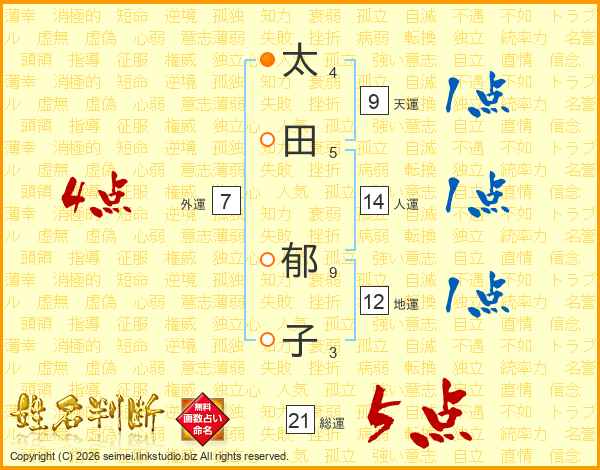 太(4画)田(5画) 郁(9画)子(3画)