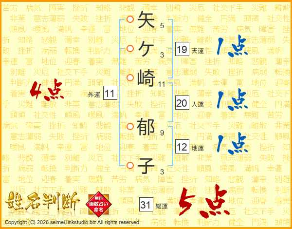 矢ケ崎郁子さんの総運は31画の5点!