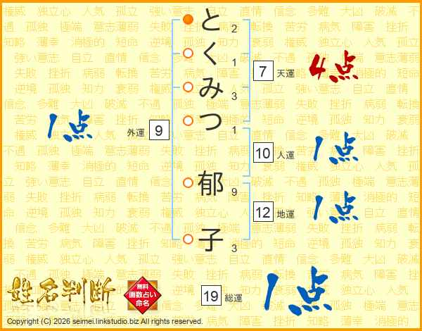 とくみつ郁子さんの総運は19画の1点!