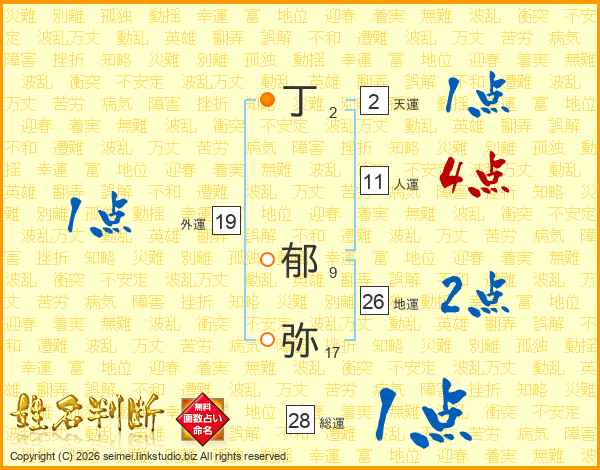 丁郁弥さんの地運は26画の2点!