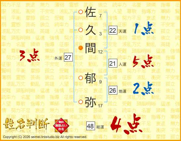 佐久間郁弥さんの総運は48画の4点!