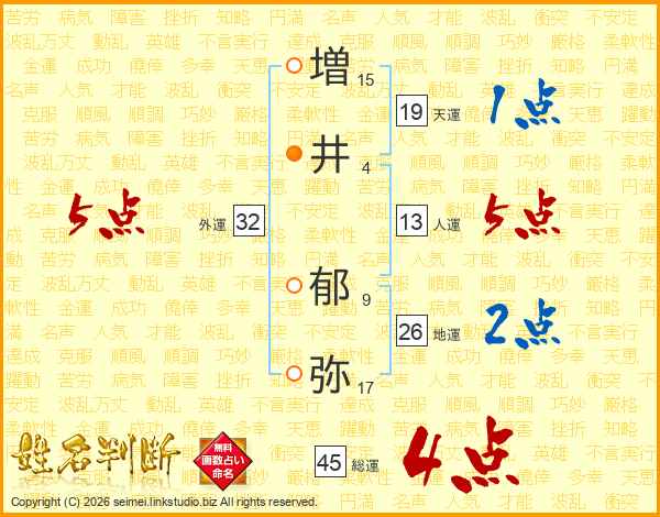 増(15画)井(4画) 郁(9画)弥(17画)