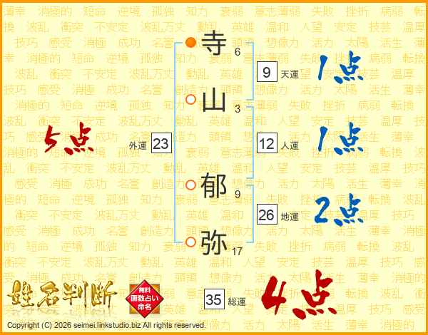寺山郁弥さんの総運は35画の4点!