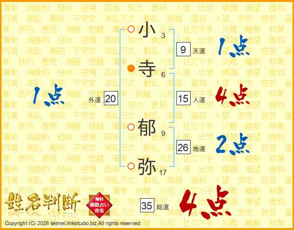 小寺郁弥さんの総運は35画の4点!