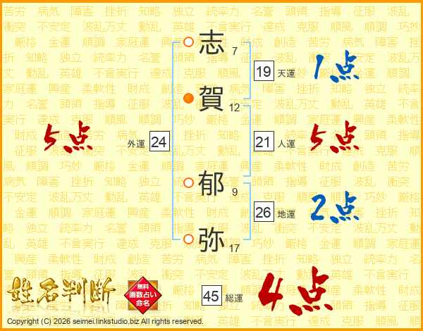 志賀郁弥さんの総運は45画の4点!