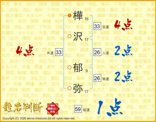 樺沢郁弥さんの天運は33画の4点!