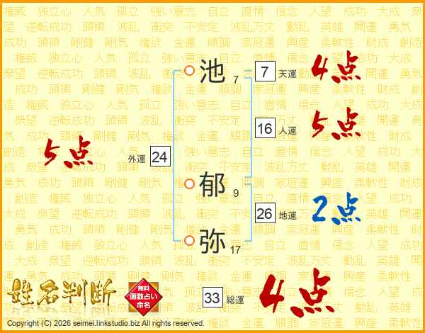 池郁弥さんの総運は33画の4点!