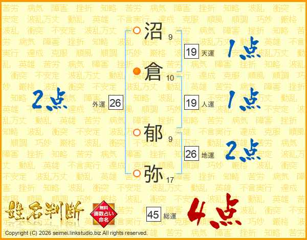 沼倉郁弥さんの総運は45画の4点!