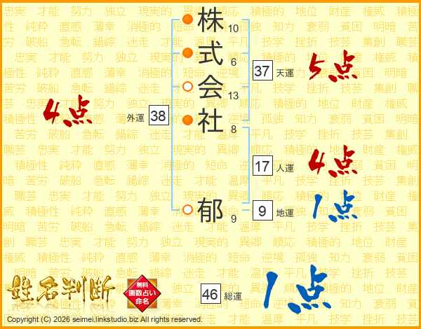 株(10画)式(6画)会(13画)社(8画) 郁(9画)