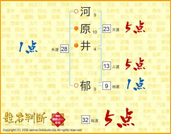 河原井郁さんの総運は32画の5点!