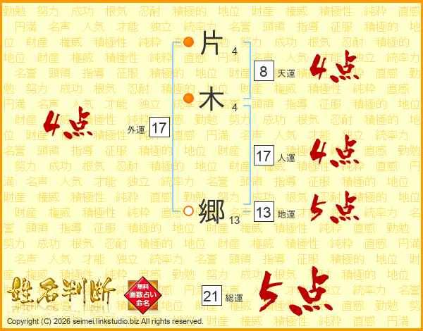 片木郷さんの総運は21画の5点!