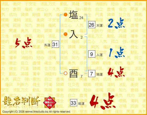 塩入酉さんの総運は33画の4点
