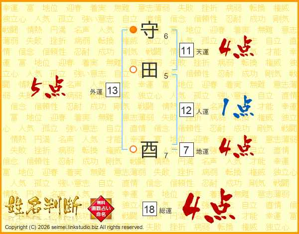 守田酉さんの総運は18画の4点!