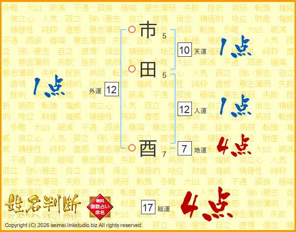 市田酉さんの総運は17画の4点!