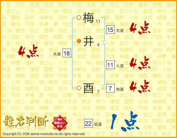 梅井酉さんの人運は11画の4点!