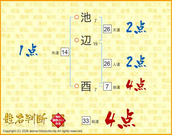 池辺酉さんの総運は33画の4点!