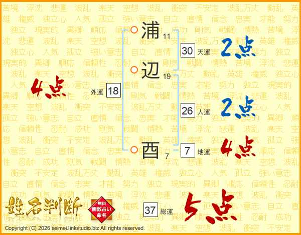 浦辺酉さんの総運は37画の5点