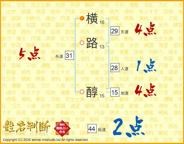 横路醇さんの総運は44画の2点!