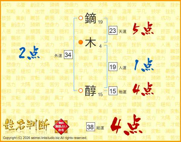 鏑木醇さんの総運は38画の4点!