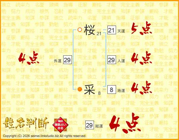 桜采さんの総運は29画の4点!