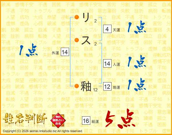 リス釉さんの総運は16画の5点!