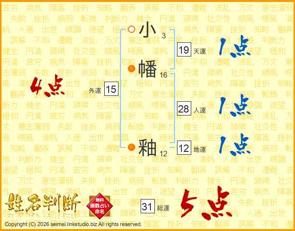 小幡釉さんの総運は31画の5点!