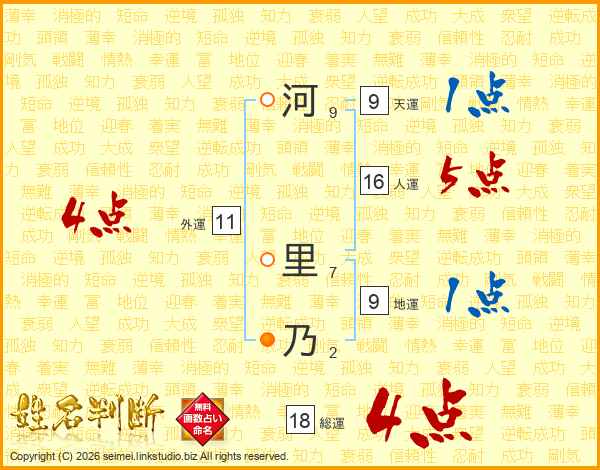 河里乃さんの総運は18画の4点!