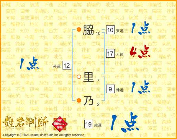 脇里乃さんの総運は19画の1点!
