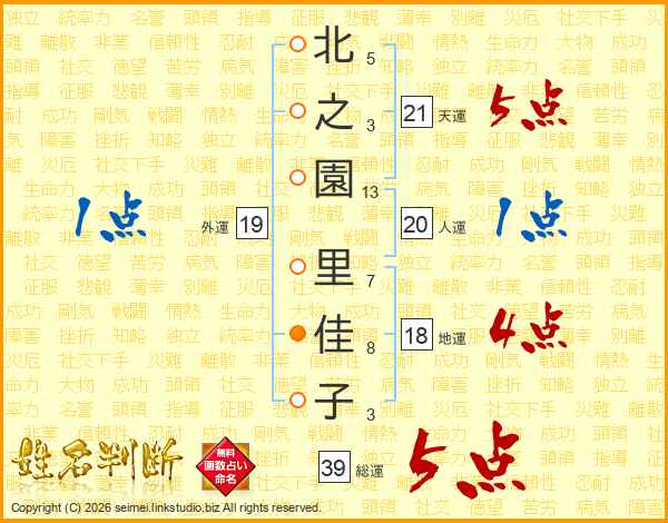 北之園里佳子さんの総運は39画の5点!