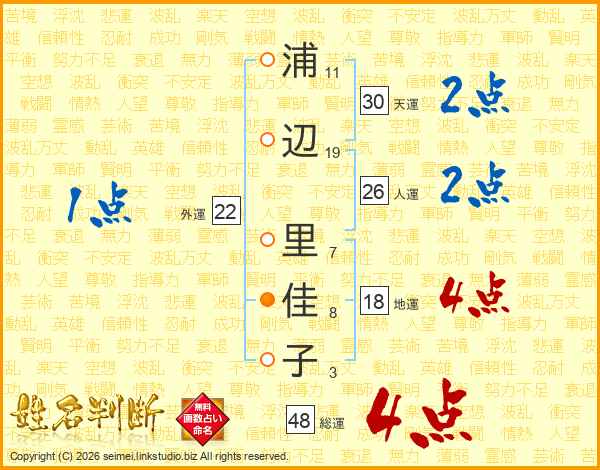 浦辺里佳子さんの総運は48画の4点!