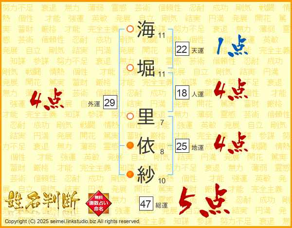 海堀里依紗さんの地運は25画の4点!