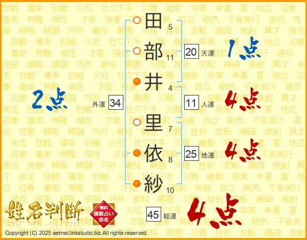 田部井里依紗さんの総運は45画の4点!