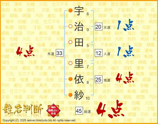 宇治田里依紗さんの外運は33画の4点!
