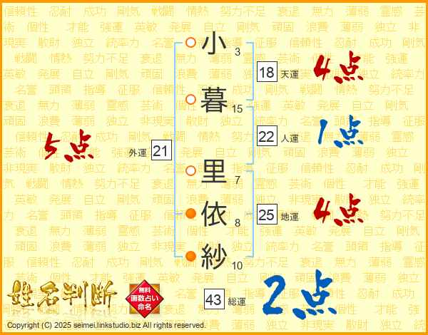 小暮里依紗さんの地運は25画の4点!