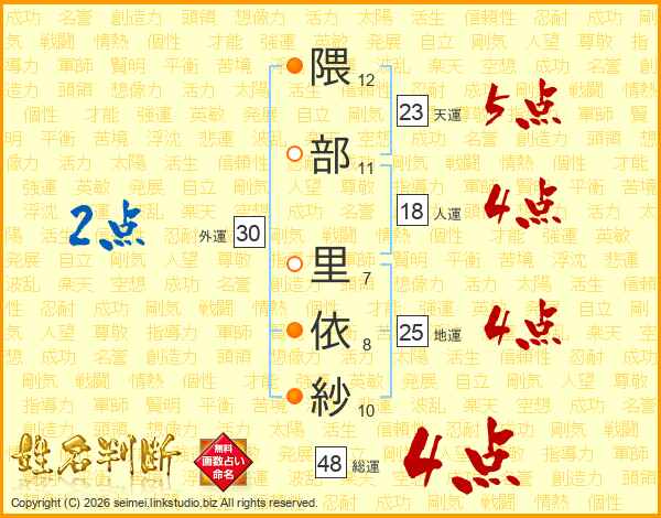 隈部里依紗さんの総運は48画の4点!