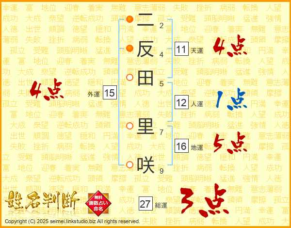 二反田里咲さんの天運は11画の4点!